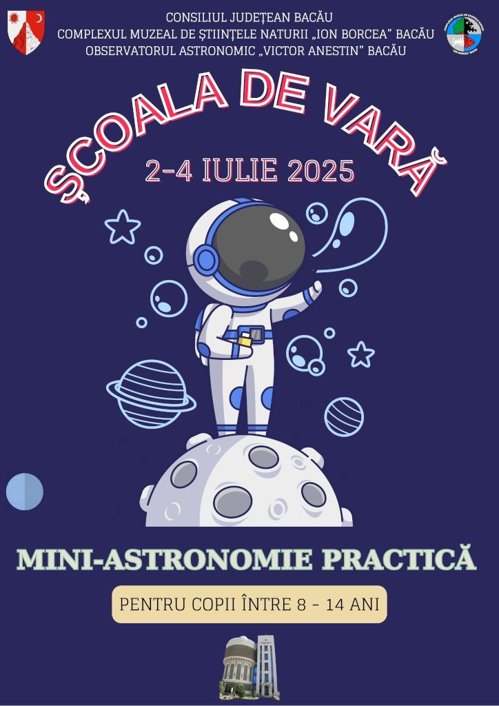 Observatorul Astronomic „Victor Anestin” din cadrul Complexului Muzeal „Ion Borcea" Bacău organizează în perioada 02 - 04 iulie 2025, a II-a ediţie a şcolii de vară pentru copii „Mini - Astronomie practică".