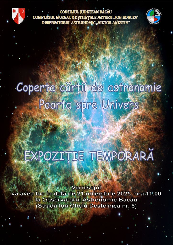 Complexul Muzeal de Științele Naturii „Ion Borcea” Bacău, vă invită, la sediul Observatorului Astronomic din str. Ion Ghelu Destelnica nr. 8, să participaţi la vernisajul expoziției temporare care va avea loc vineri 21 noiembrie 2025, ora 11.00 (în cadrul programului Simpozionului Științific „BIOLOGIA ŞI DEZVOLTAREA DURABILĂ” ediţia a XXIII – a).